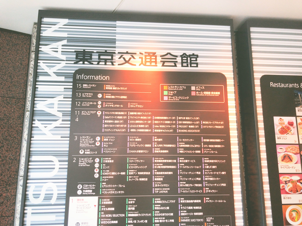 東京交通会館1階の案内板とフロアマップを見ると、たしかに有楽町美容外科クリニックの文字があります。